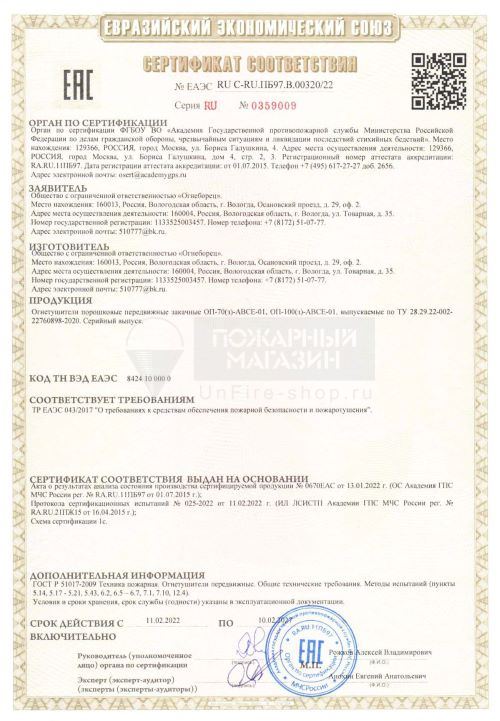 - Огнетушители МИГ, ИНЕЙ