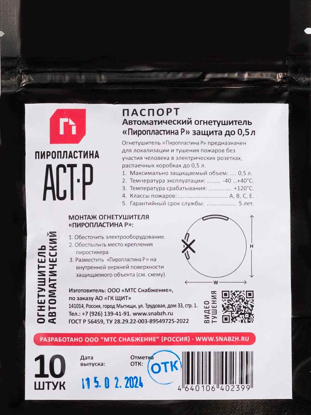 Документация ПироПластина АСТ-Р (для защиты электророзеток, на 0,5 литра объем)
