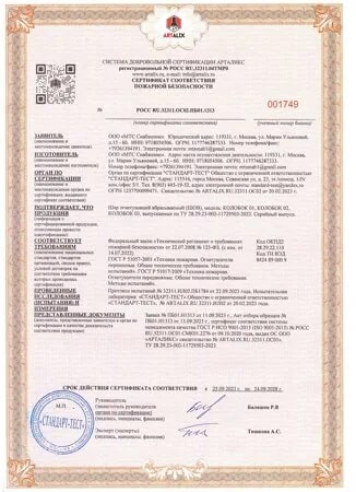 Сертификаты «КОЛОБОК-01» ШАР огнетушащий вбрасываемый (ШОВ), (защита до 5 м/куб)