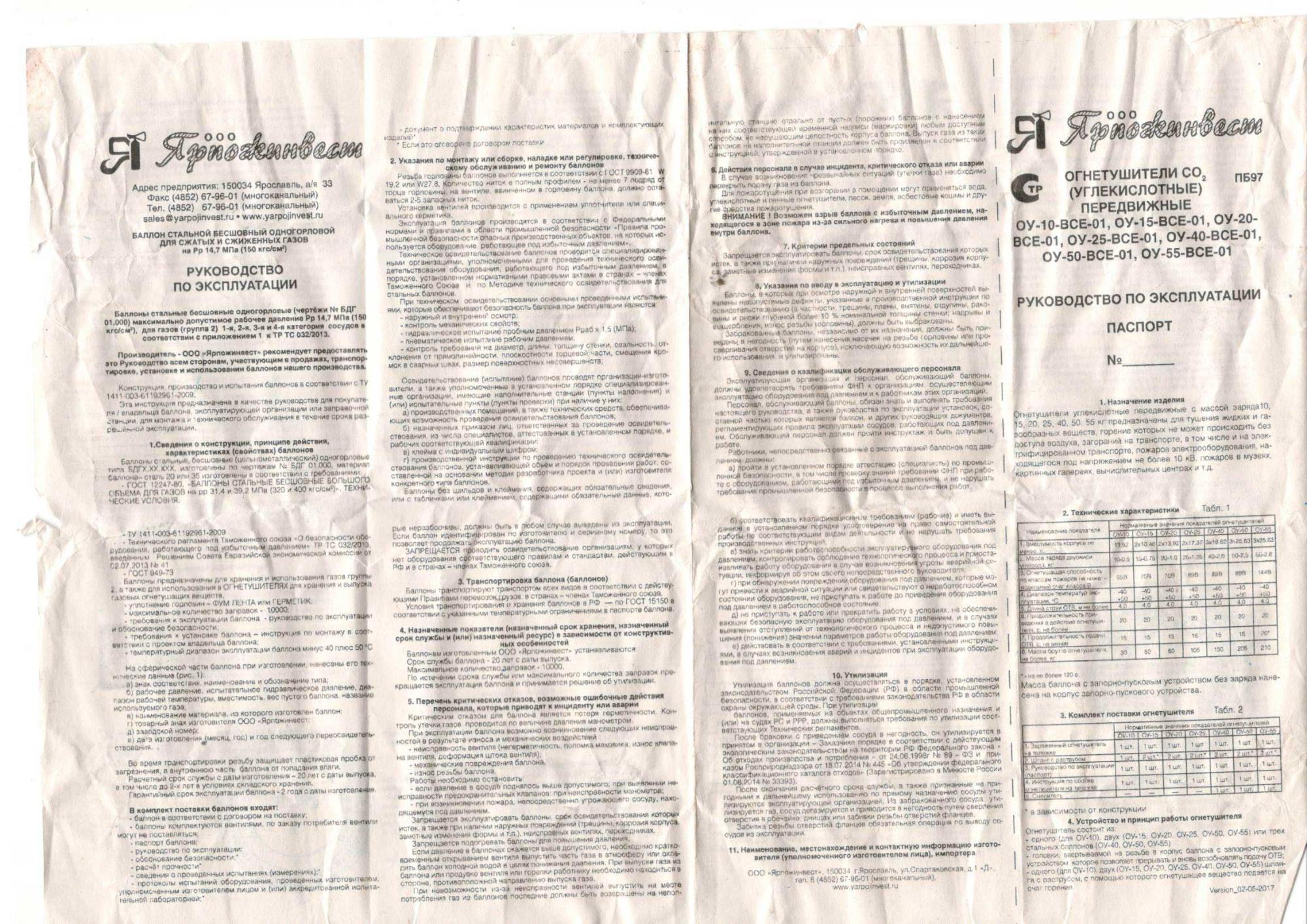 Документация Огнетушитель углекислотный ОУ-25 Ярпожинвест