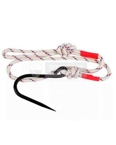 Задержка рукавная ЗР-150 состоит из металлического крюка и трехрядной веревки, продетой в кольцо крюка и заканчивающейся петлей.